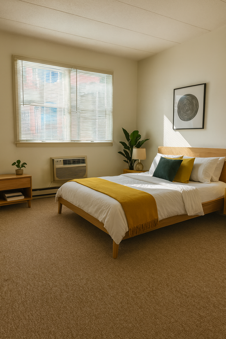 Cozy brick apartment haven blending comfort and convenience